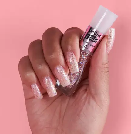 O Carnaval foi adiado, mas o seu brilho tá MUITO on! O tom rosé da coleção limitada BABADO E GLITERIA chegou para avisar que você pode, sim, arrasar sem aglomerar. Com glitter rosinha e diferentes partículas coloridas, conquiste um efeito holográfico nas unhas para dar aquele close na sala de casa. O produto tem brilho intenso e fórmula 100% vegana. Alguma dúvida que esse esmalte já nasceu hit? Descubra também os outros tons glamourosos da coleção!